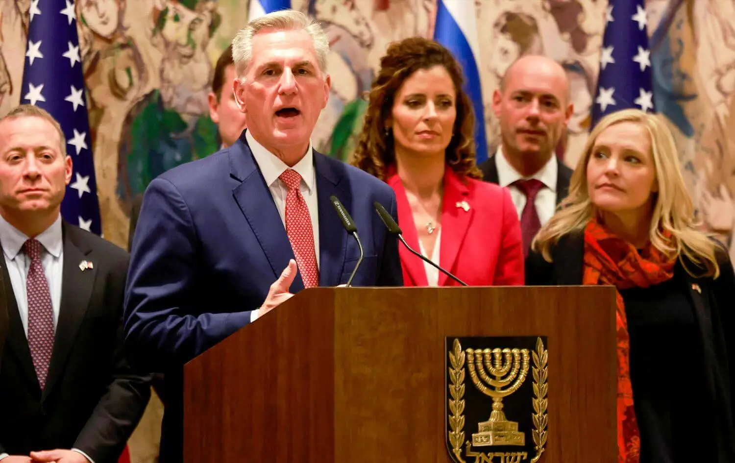 کیڤێن مەک کارتی،سەرۆکی نوێی ئەنجوومەنی نوینەرانی ئەمریکا لە ئۆرشەلیم پایەتەختی وڵاتی ئیسرائیل وتی هەموو هۆکارە توندوتیژیەکانی ناوچەکە، هۆکاری سەرەکیان هەیە و ئەیش رژیمی ئیسلامی ئێرانە. هەروەها وتیشی زۆربەری هەڕيشە و ئاژاوە، توندوتیژی و ناسەقامگیری دەگەرێتەوە بۆ ئەو سەرچاوە. رژیمی ئیسلامی ئیران هەوڵی ناسەقامگیری لە ئێراق دەدات و دەیوێت توانا موشەکیەکانی لە سوریە پێشبخات، رێکخراوی تیرۆریستی حزبوڵڵا بەهێز دەکات و هاوکات بەنزینیش بە گڕی شەڕی یەمەندا دەکات وگەنجانی ئەو وڵاتە بە کوشت دەدات و لە شوینەکانی دیکەش وەک فەلەستین و … دەیوێت بە هێزی توندڕەو چوار دەوری ئیسرائیل بگرێت. تا ئەو ساتەی من سەرۆکی نوێنەرانی وڵاتە یەکگرتوەکان بم ئەمریکا بە هەموو هێز و تەواوەتی هاوکاریی ئەمنیی ئیسرائیل دەکات.